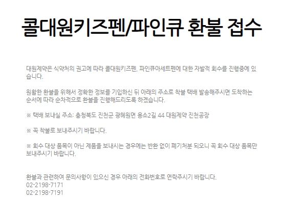 콜대원 키즈펜(아세트아미노펜) 환불방법