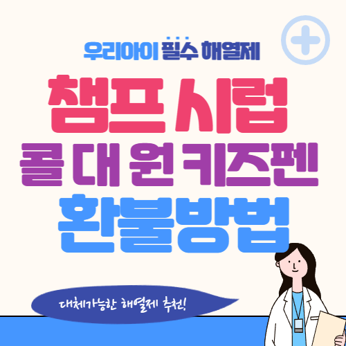 국민 해열제로 유명한 챔프시럽의 갈변현상으로 인해 리콜 조치가 이루어 진후 대체약으로 떠오른 콜대원 키즈펜 시럽마저 제조 및 판매 중지가 되어 아이를 키우는 엄마들에게 매우 충격을 주고 있는 상황입니다. 아이를 키우는 집이라면 하나쯤은 상비해 놓는 인기 해열진통제들이 강제 회수 조치가 되며, 아세트아미노펜 성분의 해열제 구하기가 하늘의 별따기인 상황입니다. 챔프시럽과 콜대원 키즈펜 회수 및 환불방법과 대체가능한 아이 해열제 소개해드리겠습니다. 환불은 순차적으로 이루어지다 보니 지체하면 늦어질 수 있으니 서둘러 신청하세요.