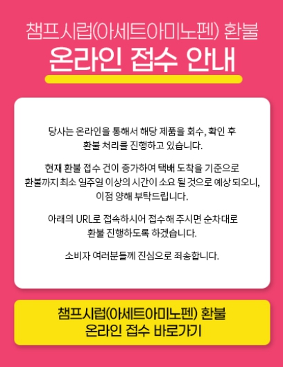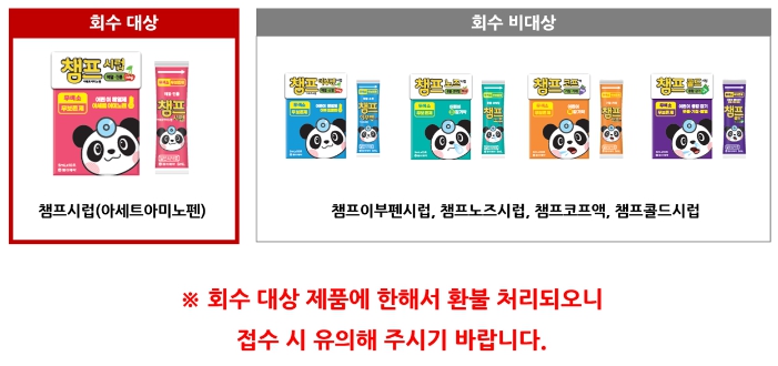 동아제약 빨간 챔프시럽(아세트아미노펜) 환불방법 및 회수 사유