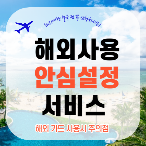 코로나 19의 제약이 사라지며 여름휴가에 해외여행을 계획 중인 분들이 늘어나고 있습니다. 해외여행 수요가 늘어나며 이에 따라 해외여행 중 카드 도난이나 복제로 인한 부정이용 사례가 증가해 금감원에서 소비자 주의경보를 내렸습니다. 즐거운 휴가를 망치는 일을 막기 위해 카드 해외사용 안심설정 서비스를 소개해드리려 하니 간단히 읽어보시고 즐거운 해외여행 다녀오시길 바랍니다.
