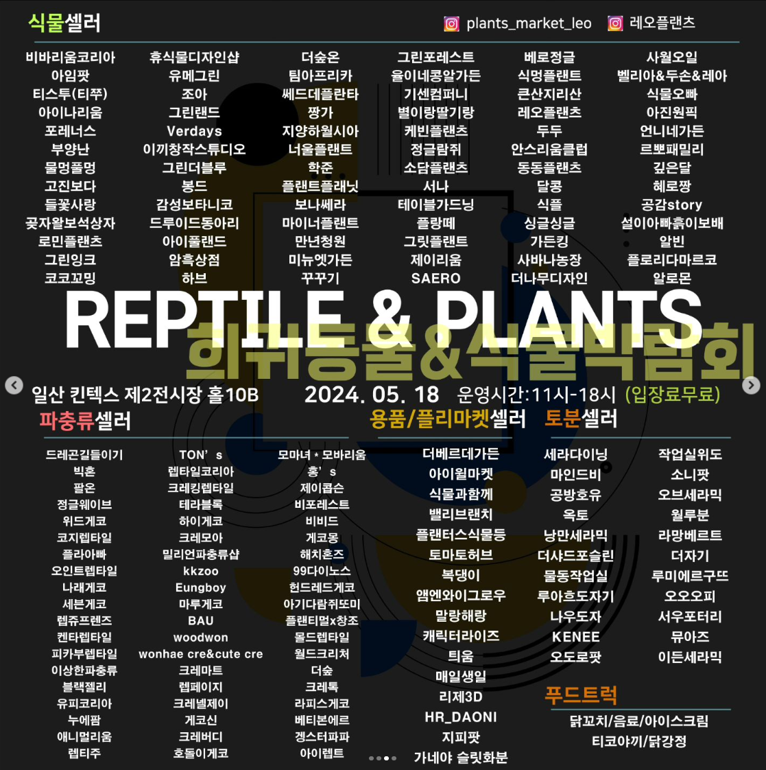 대형 박람회답게 100개가 넘는 셀러들이 참여하는데요. 셀러 별로 식물 / 파충류 / 용품 /토분 별로 나눠져 원하는 셀러를 쉽게 찾을 수 있습니다. 식물셀러 65팀 / 파충류 셀러 57팀 / 용품 셀러 19팀 / 토분셀러 26팀
